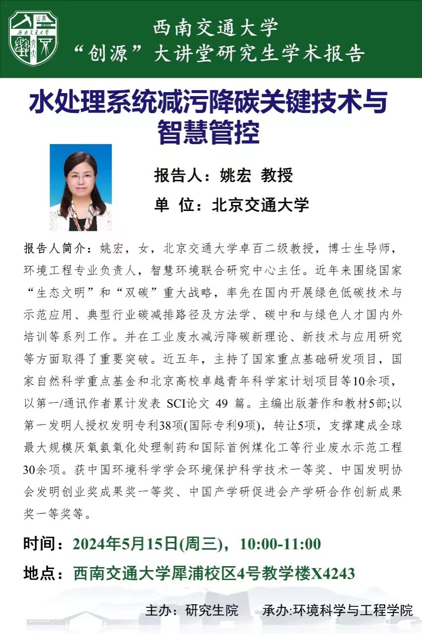 水处理系统减污降碳关键技术与智慧管控学术报告