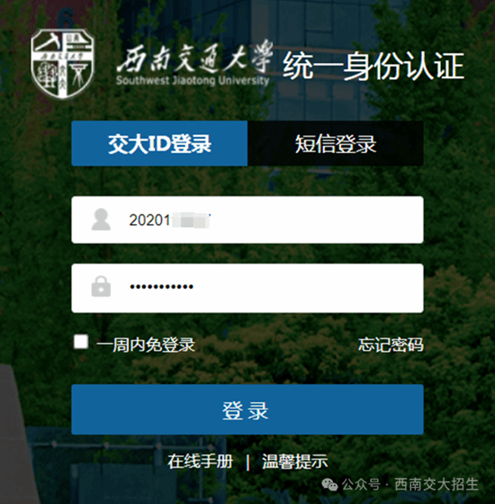 (https://zhaosheng.swjtu.edu.cn/info/1047/2119.htm)后,点击“我已仔细阅读,登录报名”