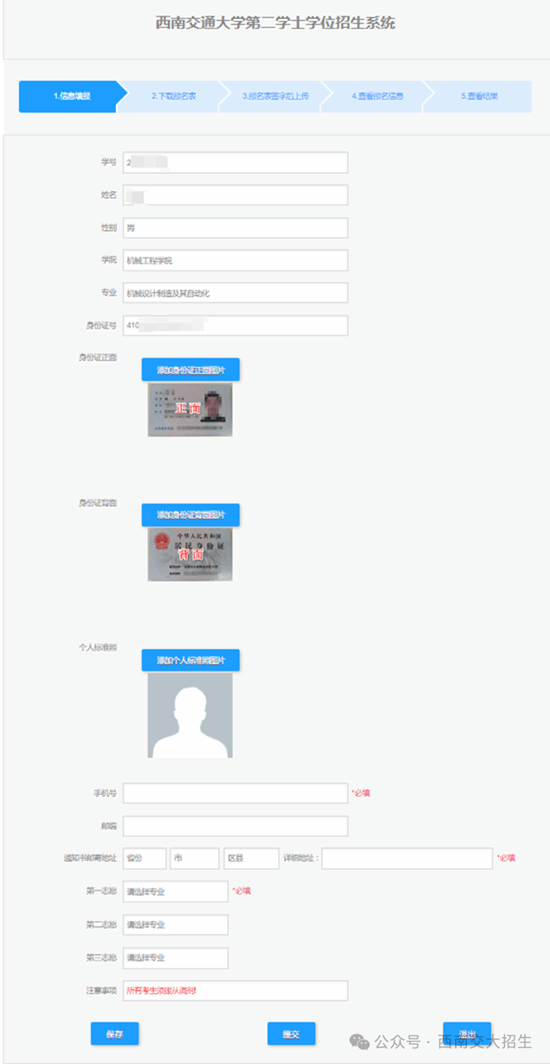 信息填报:其中带*的为必填项,请确保所有填报信息准确无误,上传照片清晰。信息填报完成后,点击“提交”,跳转到“下载报名表”。