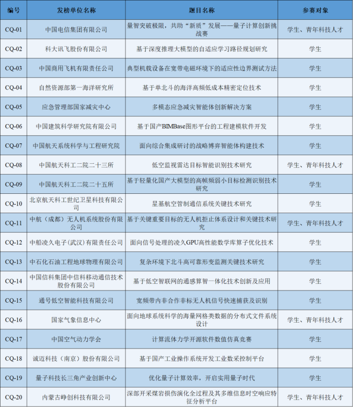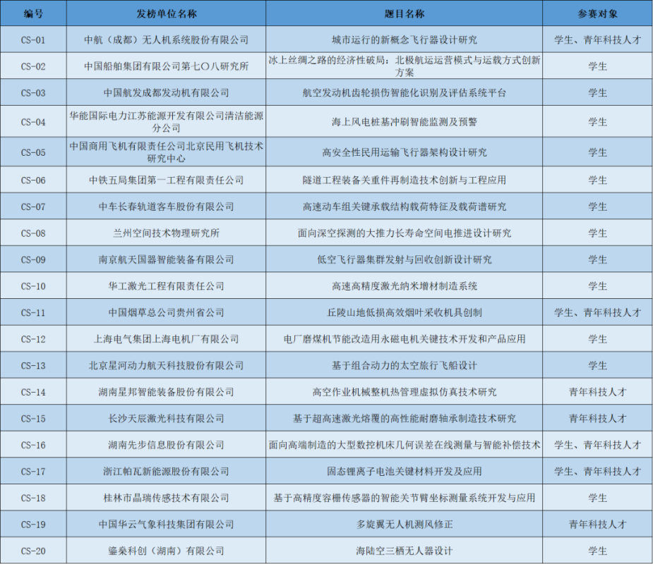 题目名称、发榜单位及参赛对象: