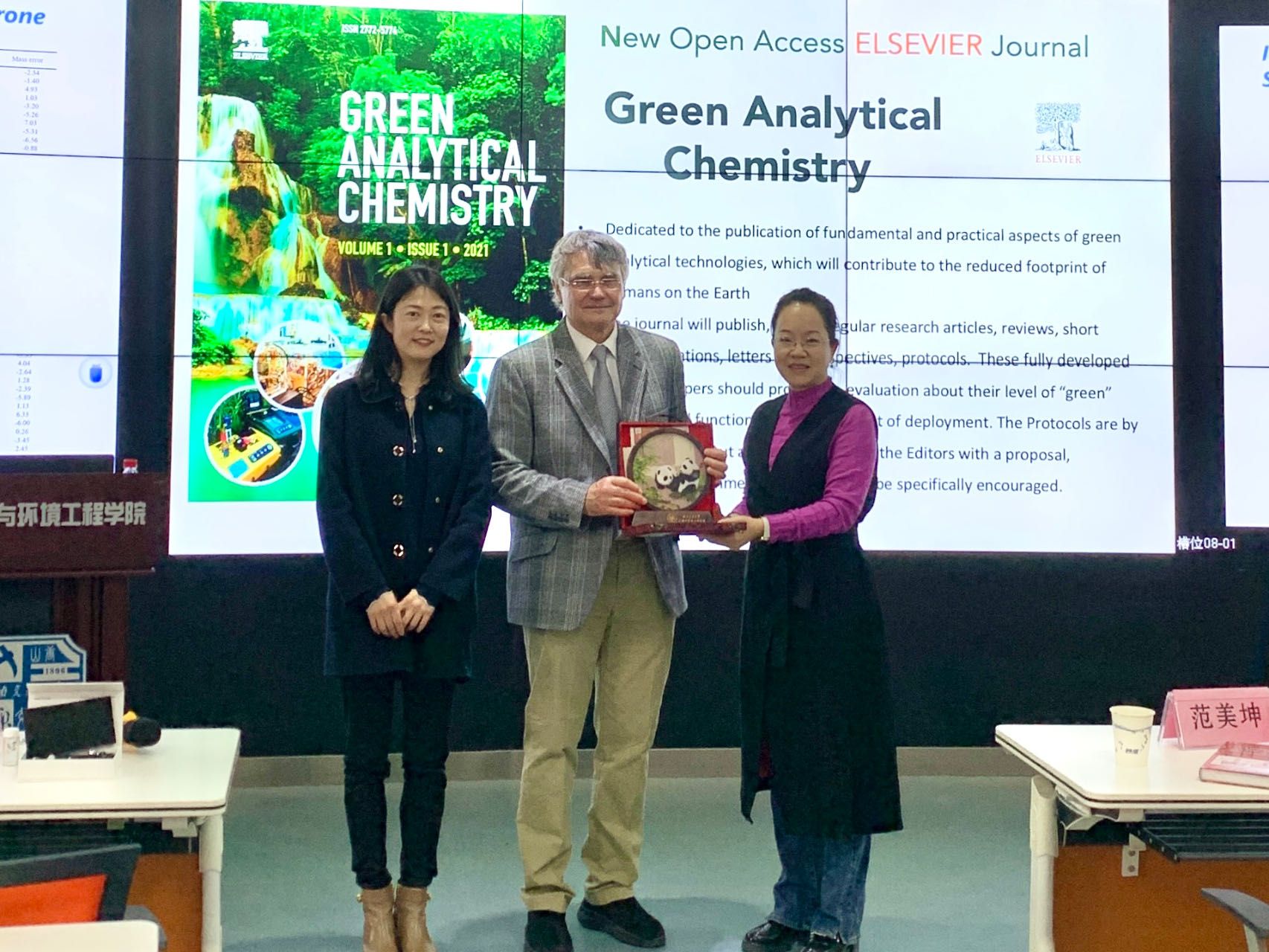 Janusz Pawliszyn教授的报告拓展了我院师生的学术视野,增进了大家对环境分析化学的认识和了解。最后,Pawliszyn教授与龚正君院长交换了礼物,并与青年教师和学生们进行了热烈的讨论。