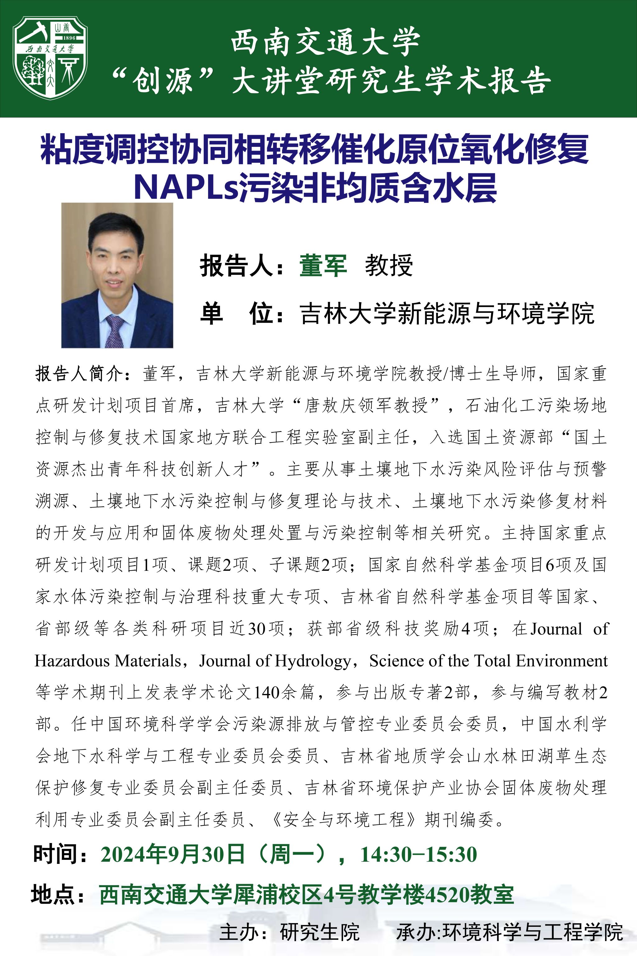 报告题目:粘度调控协同相转移催化原位氧化修复NAPLs污染非均质含水层