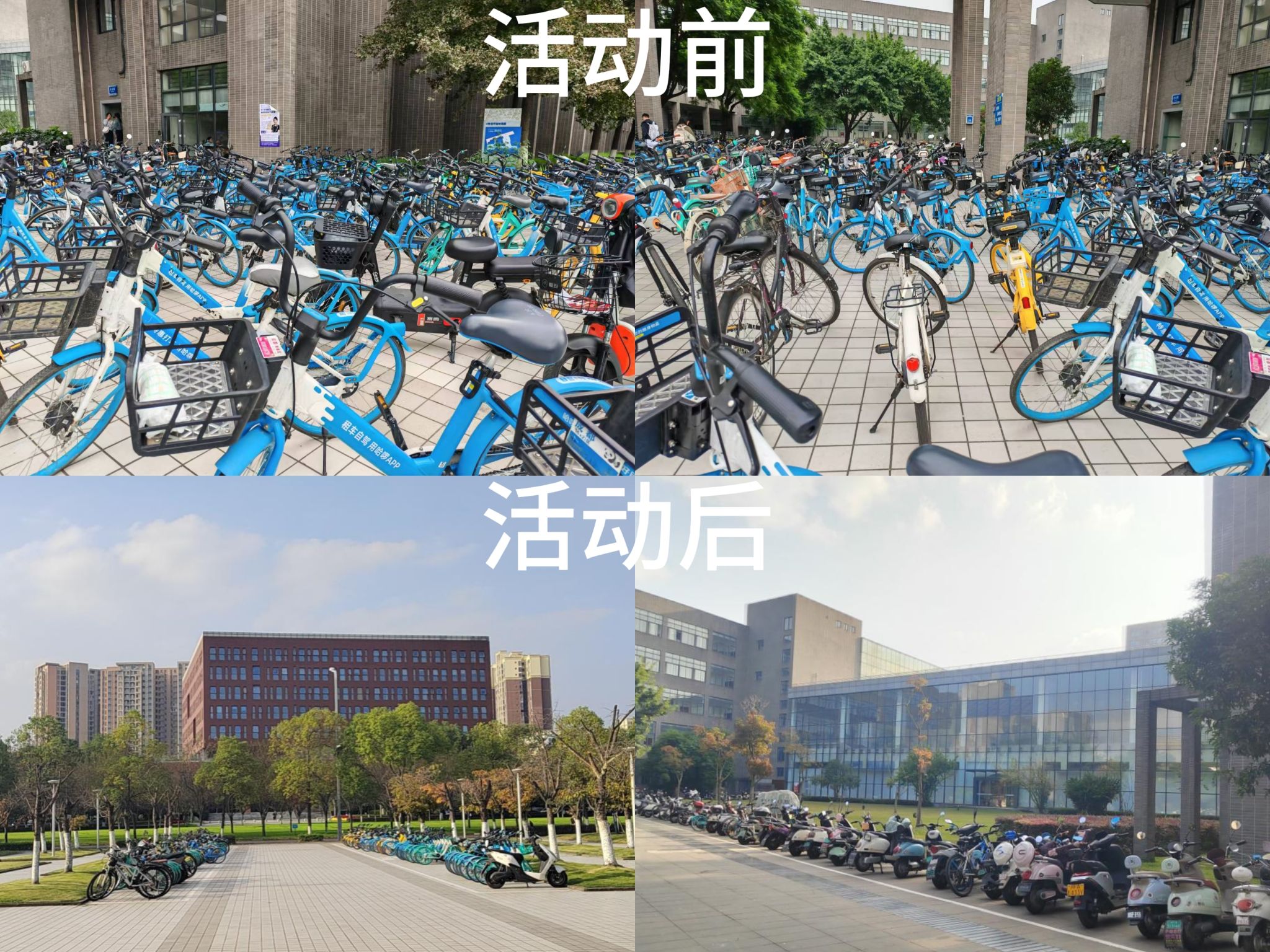 在学院党委书记甘霖,学校保卫处副处长李骐,学院党委副书记胡安辉、团委书记翟琦及各辅导员老师的带领下,学生党员志愿者们认真负责,分工明确,引导同学们将单车和电动车分区停放便于管理,将不规范停放的单车挪到指定区域,并用胶带划出新的单车停放区域。在党员志愿者和学院领导老师的引导下,前来上课的师生积极响应,四号教学楼下的单车停放区域变得十分宽敞整洁。