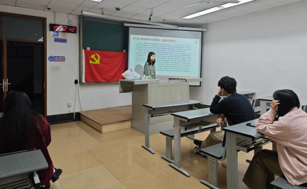 2025年4月10日19:30,研24级环境第一、二党支部在J4305B联合开展4月党日活动,此次活动以深入贯彻中央八项规定精神学习教育、强化党的作风建设为核心,同时对全国两会精神及习近平总书记近期重要讲话精神进行深度研习。会议由研24级第二党支部书记刘艳霞同志主持,旨在引导全体党员深刻领悟党的理论精髓,增强党性修养,提升服务意识与担当精神。研24级环境第一党支部应到党员17人,实到党员6人。