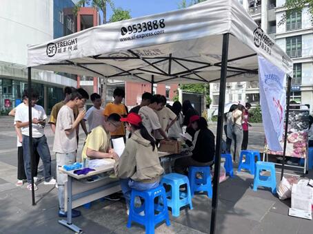上午九点活动正式开始。本次活动志愿者共分成四组,从上午九点持续到晚上六点,始终站在为同学们服务的第一线上。志愿者们将精心挑选的鲜花摆放整齐并贴好标签后,吸引了许多同学前来询问和兑换鲜花。对于同学们的好奇与疑惑,志愿者们做出耐心、细致地解答,及时帮助前来参与活动的同学搬运鲜花、登记废品兑换的分数。活动现场还设有环保知识问答环节,帮助同学们巩固和拓展环保知识。于此同时,机动组的志愿者们驱车穿梭于南区和北区各个学生宿舍,帮助废品较多的同学将废品送往活动场地进行称重和积分兑换,整个活动现场热闹而有序。