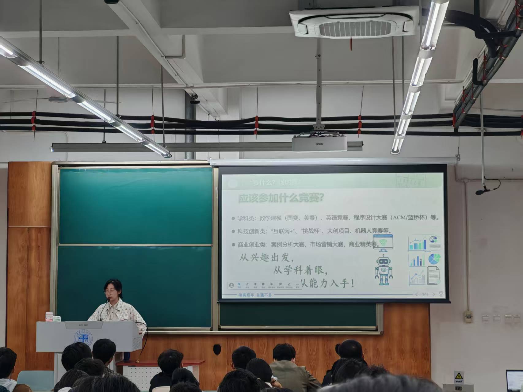 分享会上,协会邀请了具有丰富竞赛指导经验的杨言鑫老师,他系统介绍了竞赛选择方法及各类A类赛事的评分要点与备赛策略,并重点分析了数学建模、人工智能等相关赛事的评审视角,为学生提供了实用建议。随后,曾获多项国家级、省级竞赛奖项的邢克文同学从参赛者角度出发,分享了备赛时间安排、团队协作、材料撰写与答辩技巧,内容具体详实,为同学们提供了切实可行的参考。