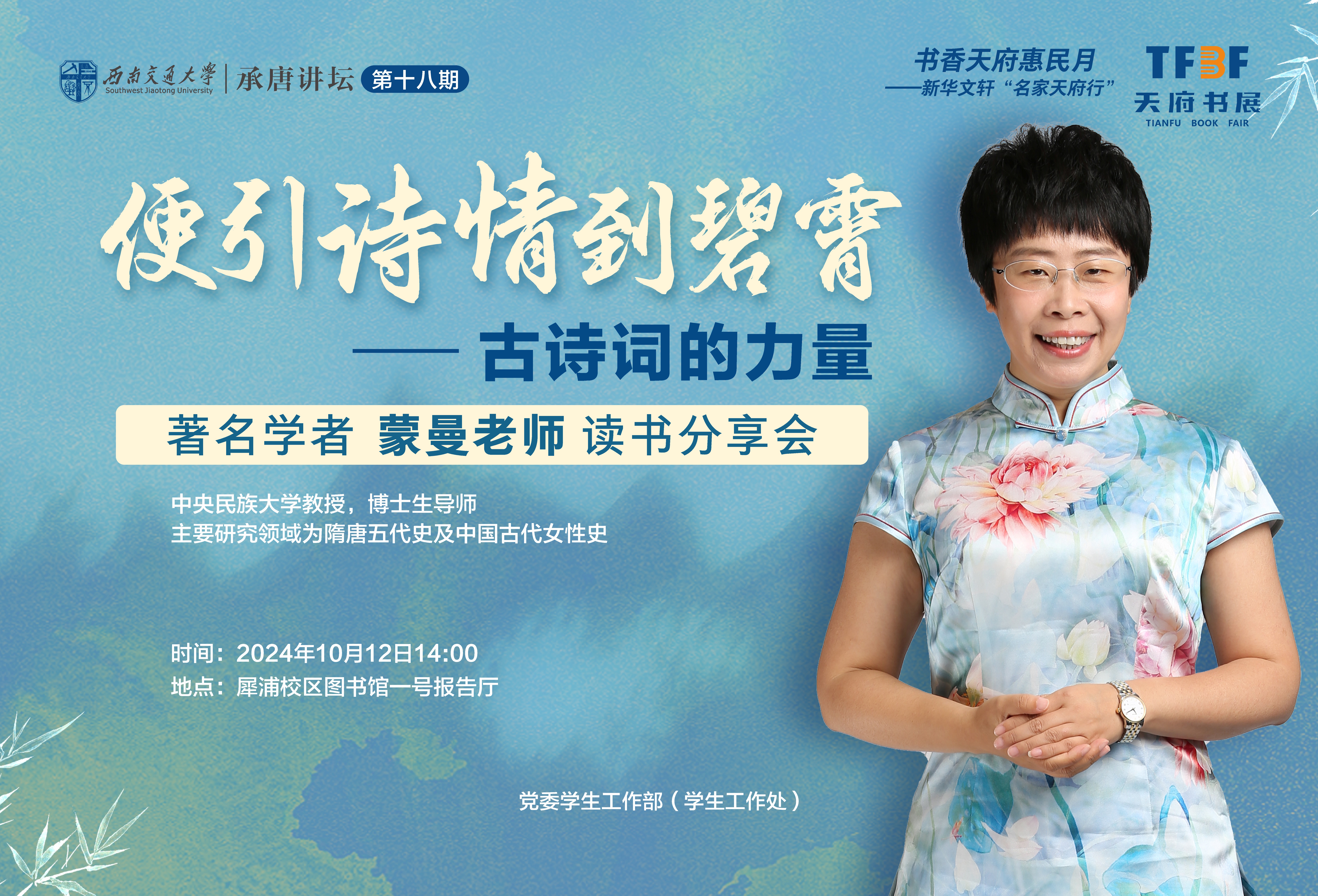 为弘扬中华优秀传统文化,引导学生感悟经典文化内涵,深刻感受古诗词作为中华民族瑰宝所蕴含的无穷力量,领略其无穷魅力与价值。学校特邀著名学者蒙曼教授做客“承唐讲坛”,开展“便引诗情到碧霄——古诗词的力量”主题讲座,现将具体安排公告如下: