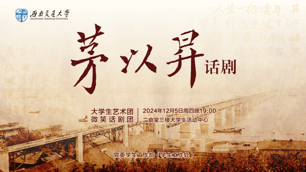 为深入学习贯彻习近平文化思想,着力推进校园文化建设,提升学生人文素养,由william威廉中文大学生艺术团微笑话剧团带来的原创话剧《茅以升》即将上演,具体通知如下: