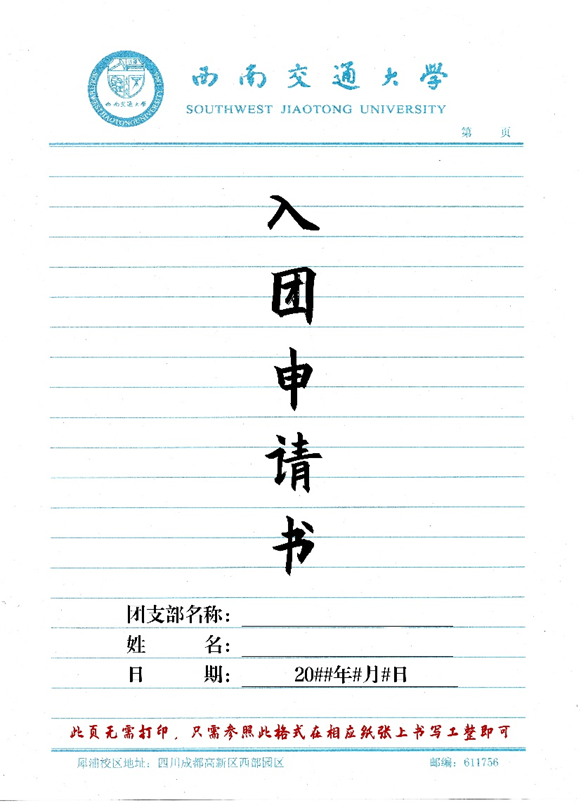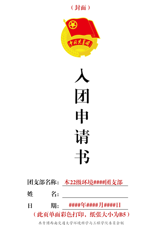 入团申请书封面格式参考